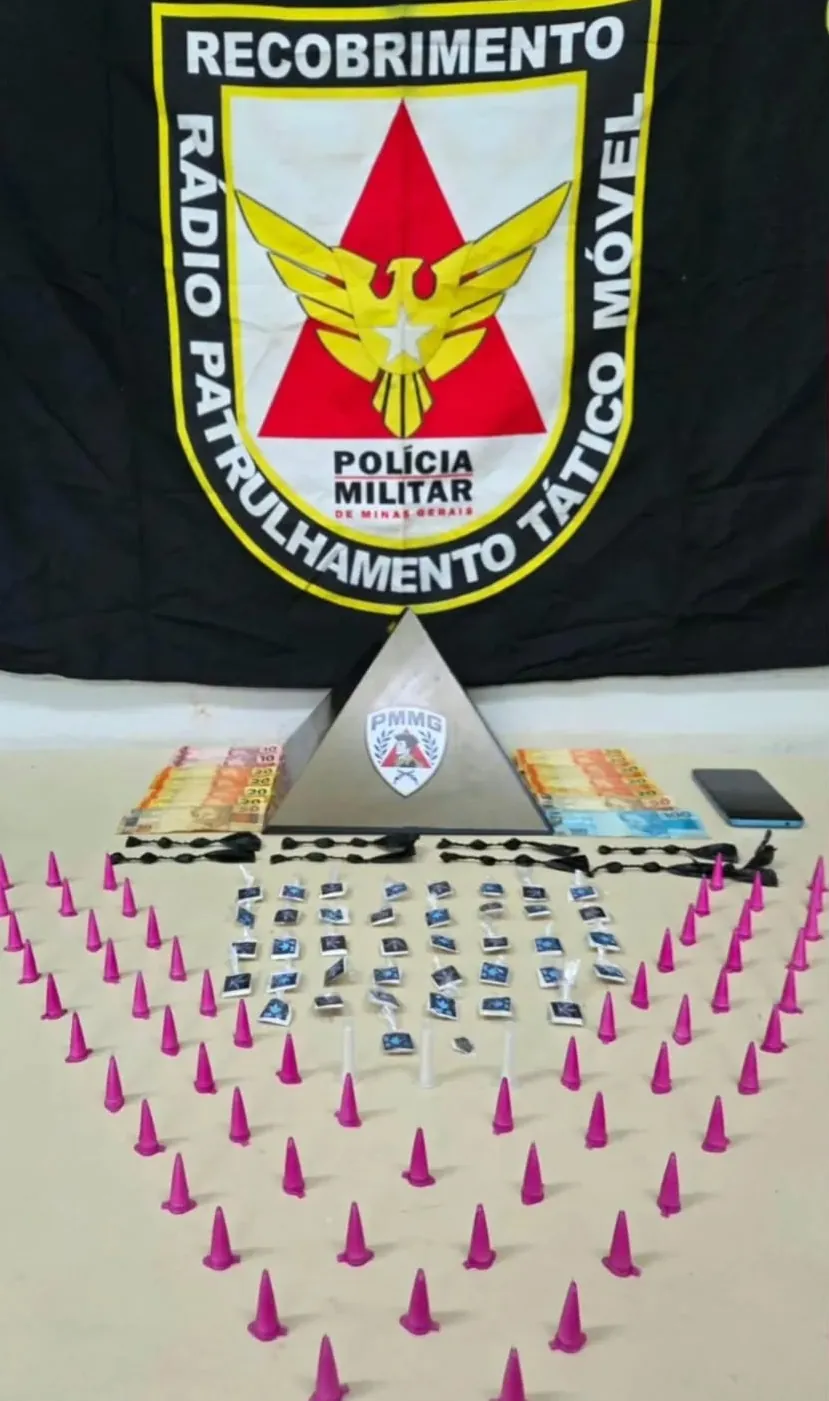 Durante a abordagem, foram apreendidos 64 pinos de cocaína, 40 papelotes de haxixe, 25 pedras de crack e R$ 400 em dinheiro. Todo o material estava fracionado e pronto para comercialização, segundo a Polícia Militar.