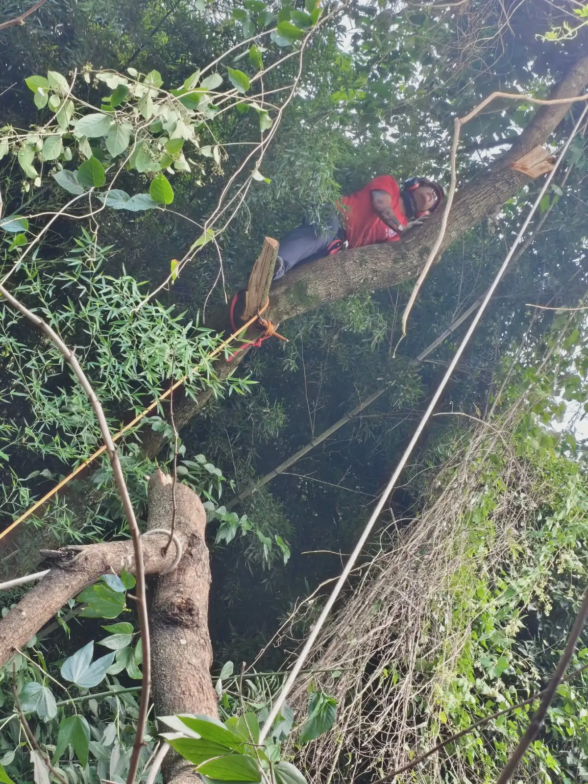 A ocorrência foi registrada na Rua Fernando Avelino Andrade, no bairro João Teixeira Filho, onde a árvore estava situada em um talude nos fundos do imóvel, oferecendo perigo aos moradores.