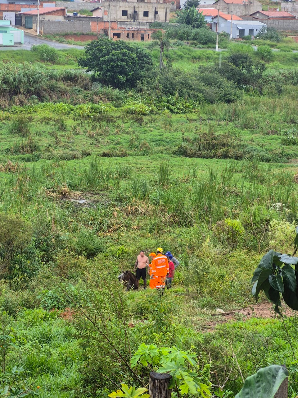 Após o resgate, o cavalo foi levado para um local seguro e entregue ao responsável. Apesar do cansaço, o animal não apresentava lesões aparentes.