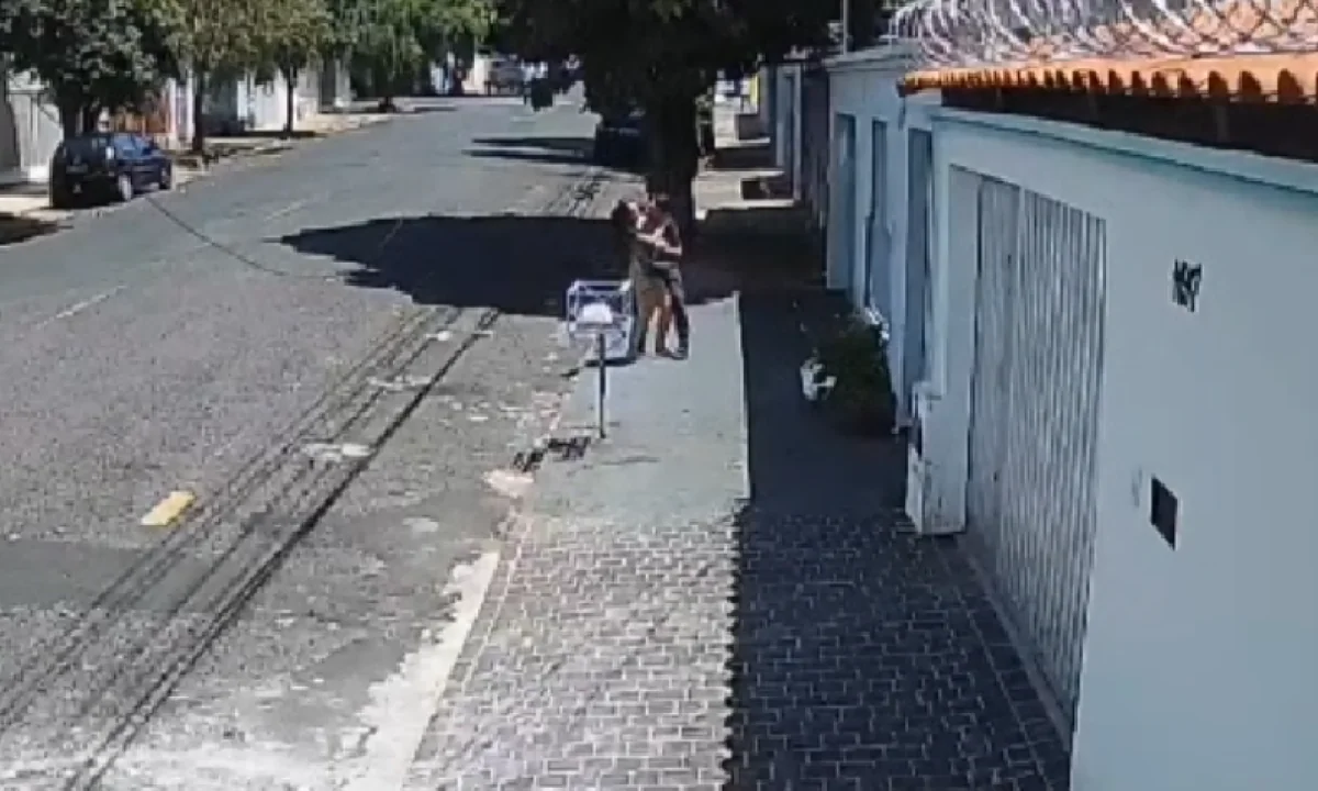Uma câmera de segurança flagrou um homem agarrando uma mulher, passando a mão nela e forçando um beijo no meio da rua, em Uberlândia, na última segunda-feira (24/11). O assediador ainda não foi preso.