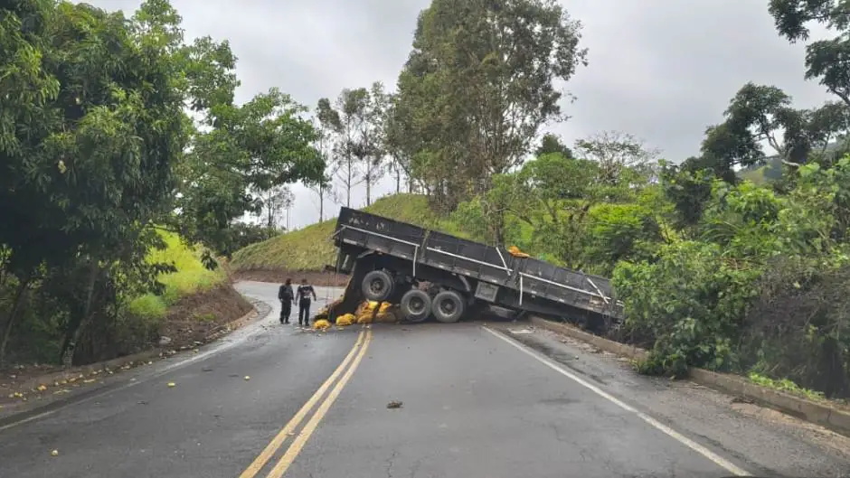 De acordo com a Polícia Militar, a ocorrência foi registrada no km 7 da rodovia, no bairro Juru. A cabine da carreta caiu em um barranco, enquanto a parte traseira permaneceu bloqueando as duas faixas da via. Com o impacto, a carga ficou espalhada pela rodovia que liga Itajubá a Maria da Fé.