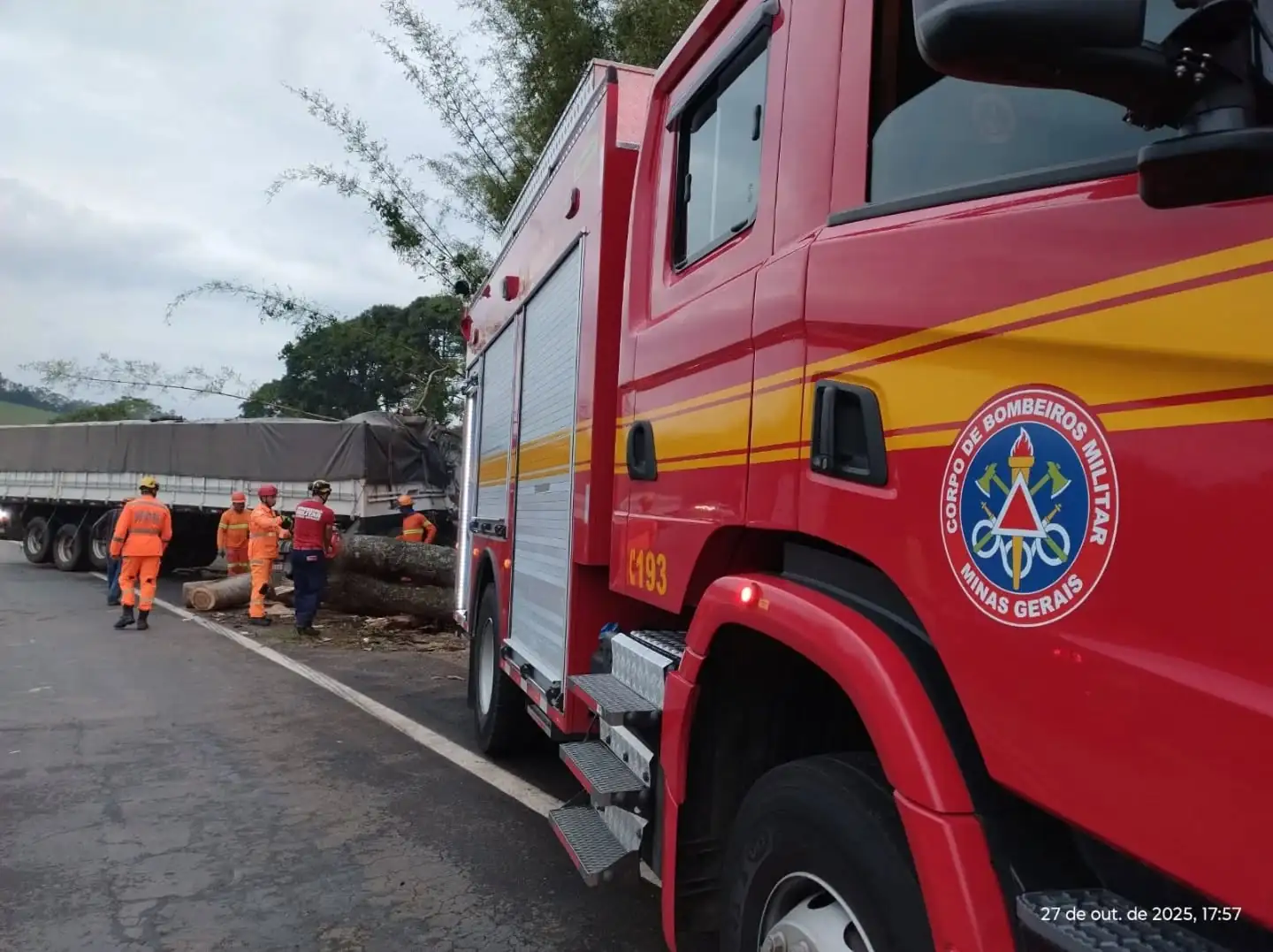 Os bombeiros, com o apoio da equipe da concessionária, realizaram o tracionamento e a retirada da árvore. Depois, fizeram o corte do tronco para liberar completamente a pista e restabelecer o fluxo de veículos.
