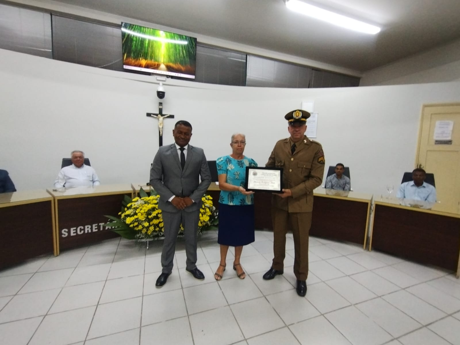 Autoridades municipais e representantes da Polícia Militar também usaram a tribuna para destacar a importância dos homenageados e expressar gratidão pelos anos de serviços prestados ao município.