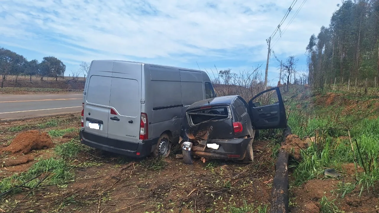 Segundo a PM, a van seguia no sentido Conceição da Aparecida quando perdeu o freio e acabou atingindo a traseira do Fox, que trafegava à sua frente. Com a colisão, os dois veículos foram parar fora da pista.