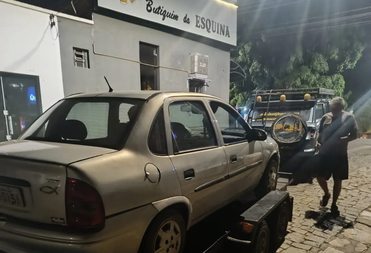 Durante patrulhamento de rotina no Centro de Carmo do Rio Claro, a Polícia Militar avistou um veículo GM/Corsa Sedan bege trafegando com os faróis apagados. Ao notar a aproximação da viatura, o motorista deu marcha à ré e tentou fugir em direção ao Banco do Brasil, mas foi alcançado na Travessa José Matilde, em frente ao Banco Itaú.