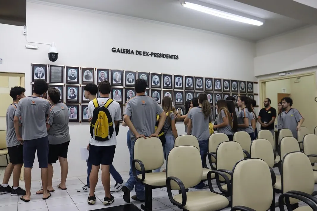 Durante a visita, os estudantes tiveram a oportunidade de dialogar com os vereadores Paulão, Tenente Clemente, Lucas Carielo (presidente da Câmara), Marcelo Tormenta e Marcos, que contribuíram com informações e reflexões sobre o papel do legislativo municipal e os desafios da política local.
