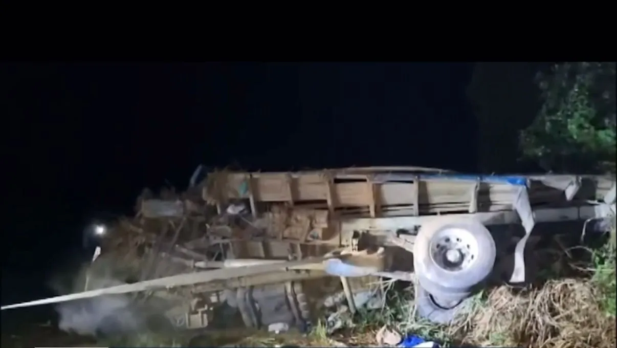 Um grave acidente foi registrado na madrugada desta terça-feira (14) na BR-146, em Passos (MG). Um caminhão carregado com batatas capotou às margens da rodovia, deixando duas pessoas adultas e uma criança feridas. Segundo a Polícia Militar Rodoviária, as vítimas ficaram presas nas ferragens por quase uma hora até que um motorista que passava pelo local acionasse o socorro.