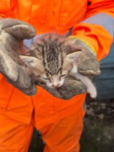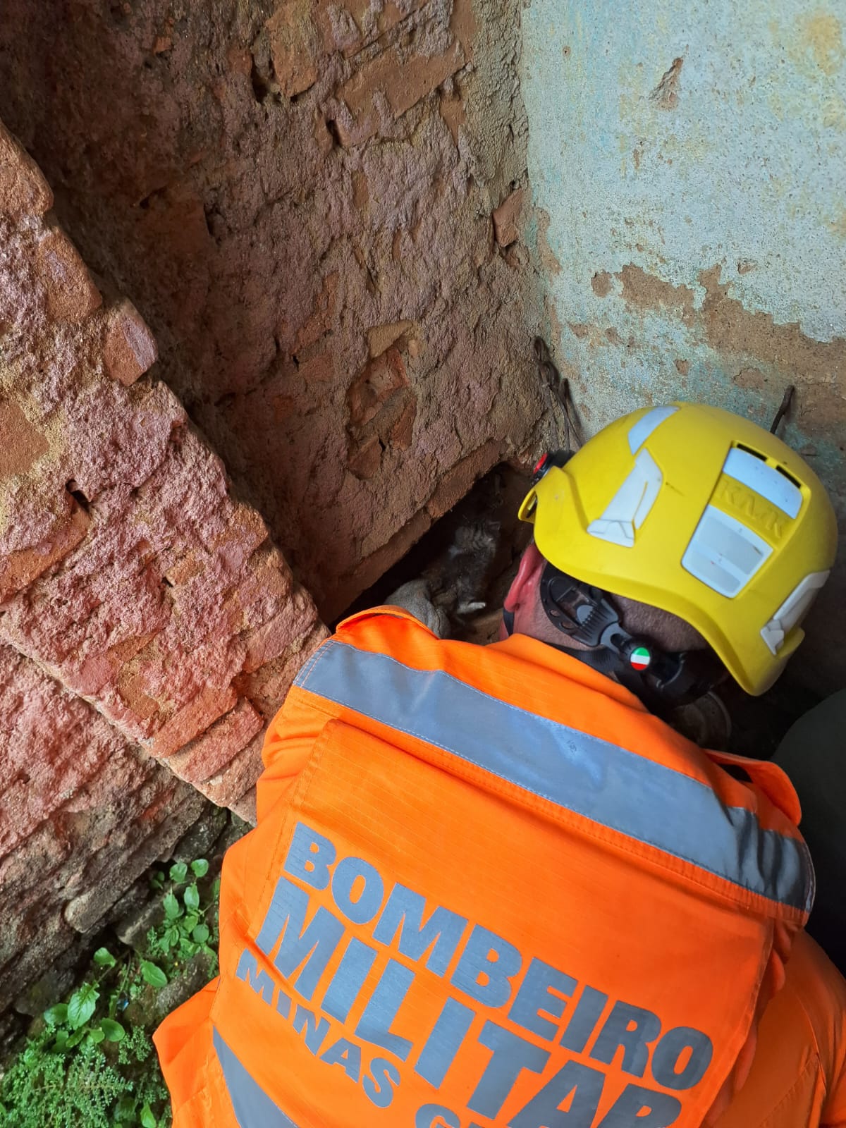 O Corpo de Bombeiros Militar de Minas Gerais resgatou um filhote de gato que estava preso há cerca de dois dias em um espaço estreito entre um muro e uma residência, no município de Cruzília. A ocorrência foi registrada na manhã desta terça-feira, 07, quando a equipe da unidade de São Lourenço foi acionada para atender a situação de risco envolvendo o animal.