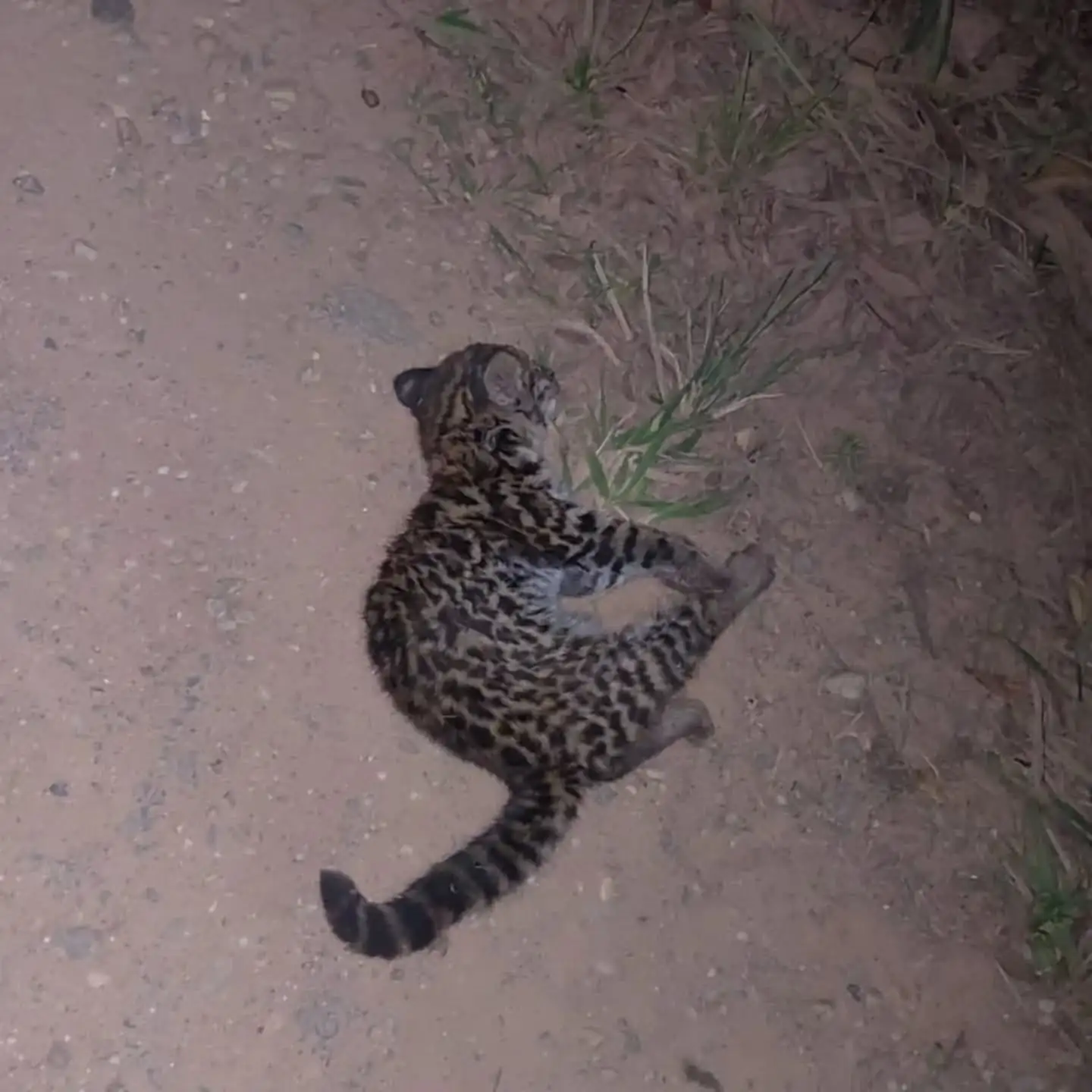 Filhote de jaguatirica é resgatado debilitado às margens da MG-347, no Sul de Minas