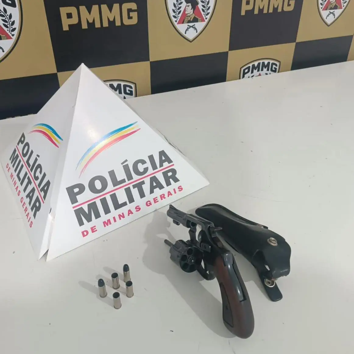 Os policiais iniciaram buscas e conseguiram localizar o veículo utilizado na fuga. O suspeito foi encontrado em sua residência, onde confessou o crime e entregou voluntariamente um revólver calibre 32, com cinco munições — três deflagradas e duas intactas.