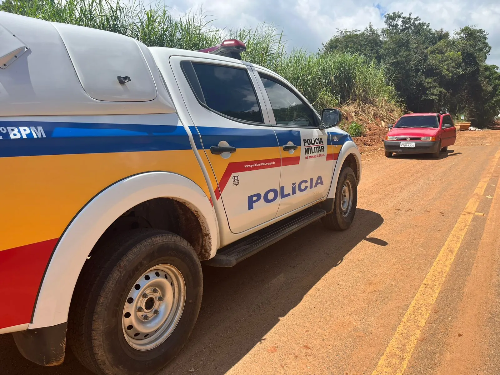 Com o reforço do policiamento na zona rural, equipes da Patrulha Rural e do Rádio Patrulha identificaram um veículo com as mesmas características na estrada que liga Alpinópolis a Nova Resende, nas proximidades do bairro Casca D’Anta.