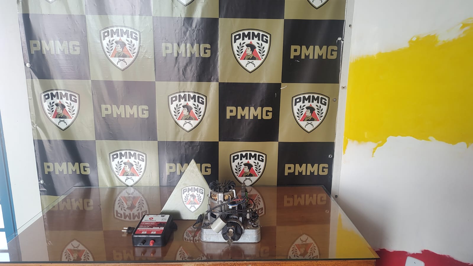 De acordo com o relato, foram levados do local uma bomba costal e um motor de portão eletrônico. Após registrar a ocorrência, os militares reuniram as informações fornecidas e iniciaram rastreamento na região.