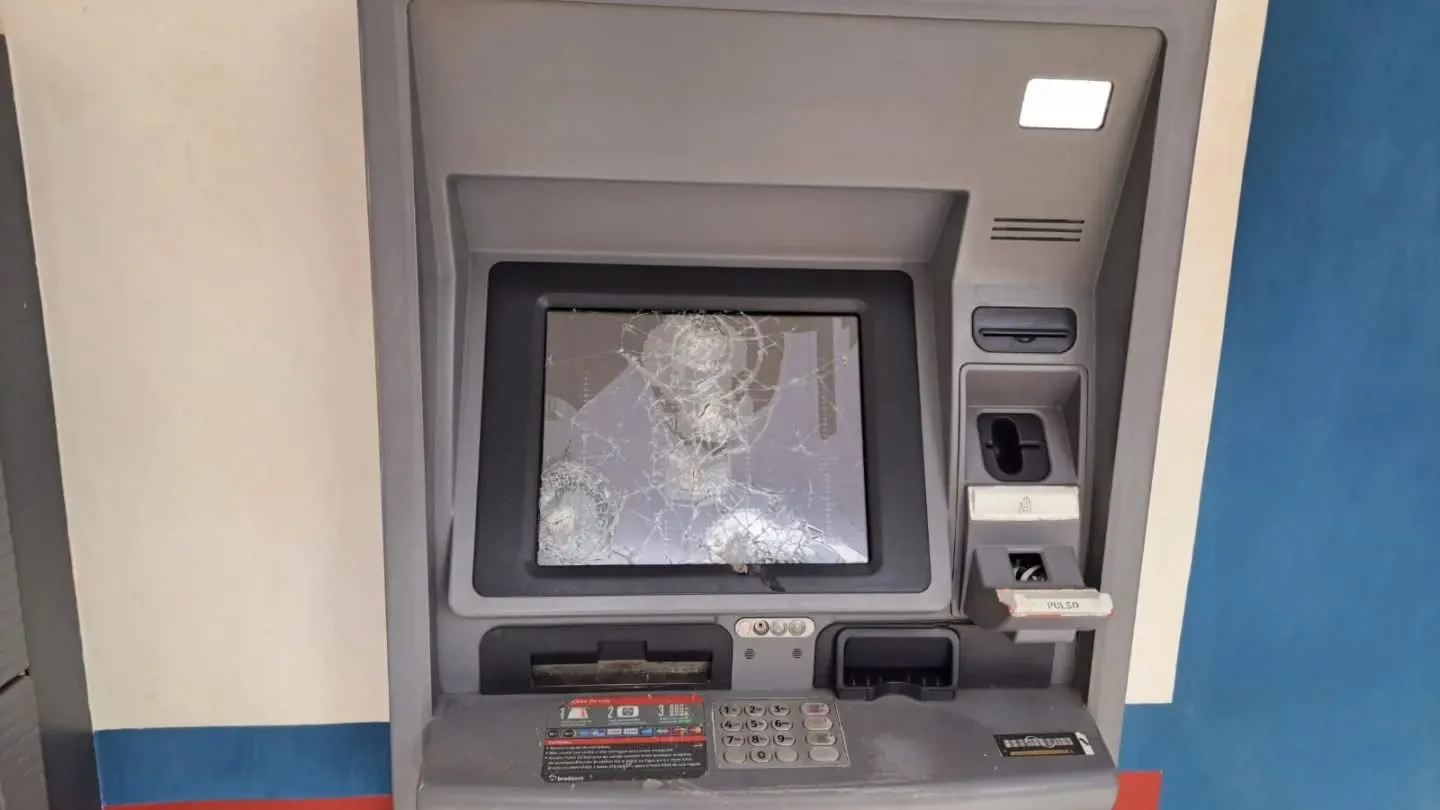 Um caixa eletrônico do Bradesco apareceu danificado nesta quarta-feira (13) em Campo do Meio, no Sul de Minas. Segundo moradores, um homem teria se irritado após uma falha no momento de realizar um saque e, com isso, acabou quebrando parte dos terminais de autoatendimento.