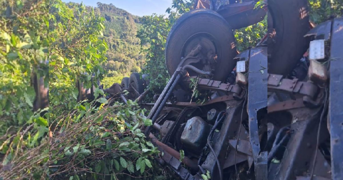 De acordo com informações da Polícia Militar, moradores da região acionaram a corporação na manhã de hoje após relatarem um forte barulho por volta de 1h da madrugada. Diante da denúncia, os militares foram até o local e encontraram um caminhão Mercedes-Benz 1313 tombado às margens da rodovia.