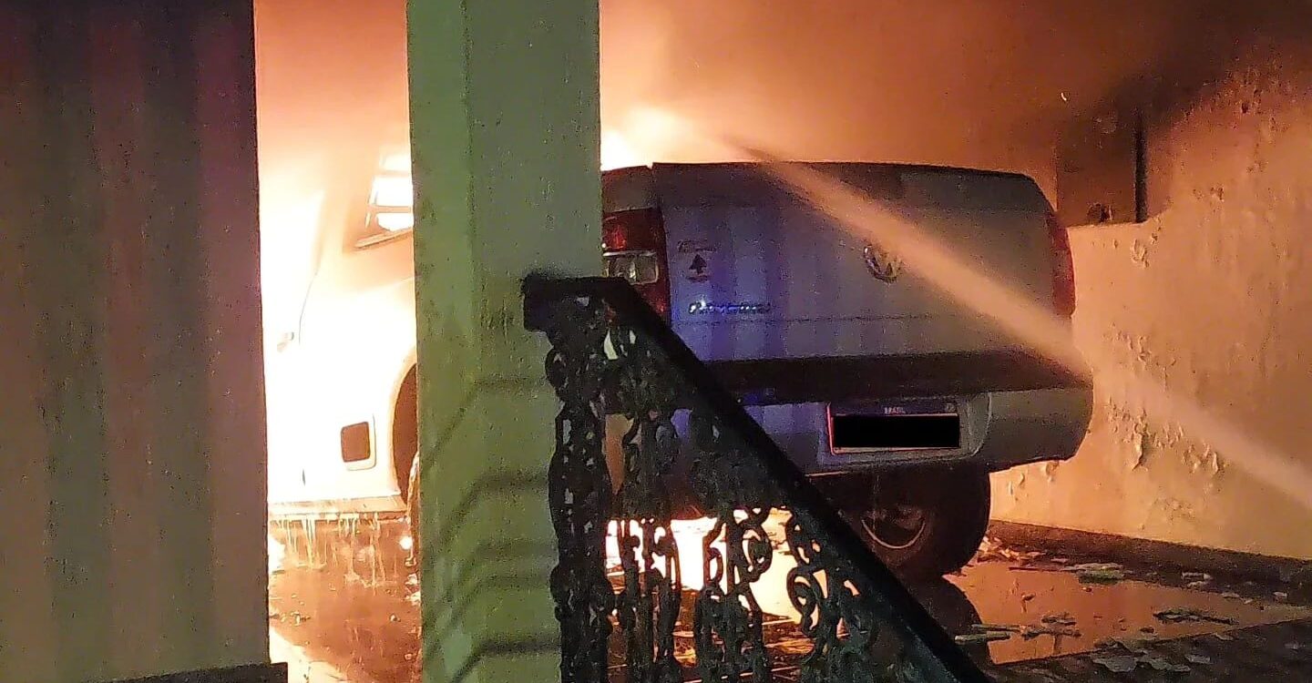 Em Guaxupé, no Sul de Minas, uma caminhonete pegou fogo dentro da garagem de uma residência na noite desta segunda-feira (5). A rápida atuação do Corpo de Bombeiros evitou que as chamas se espalhassem e causassem danos maiores ao imóvel.