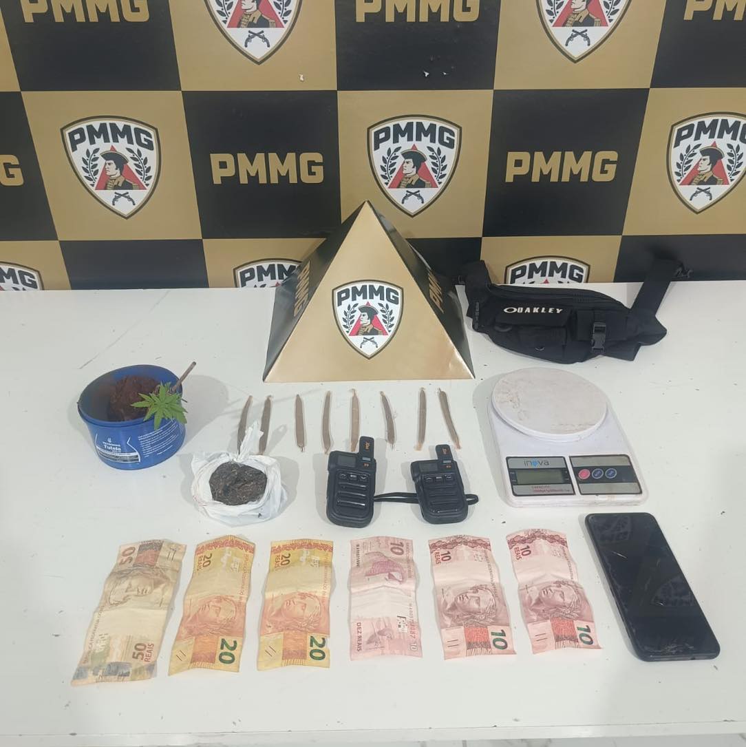 No imóvel, os militares encontraram um pé de planta com características de maconha, uma porção maior da mesma substância, dois rádios comunicadores e uma balança de precisão, materiais que, segundo a PM, reforçam a suspeita de comercialização de entorpecentes.