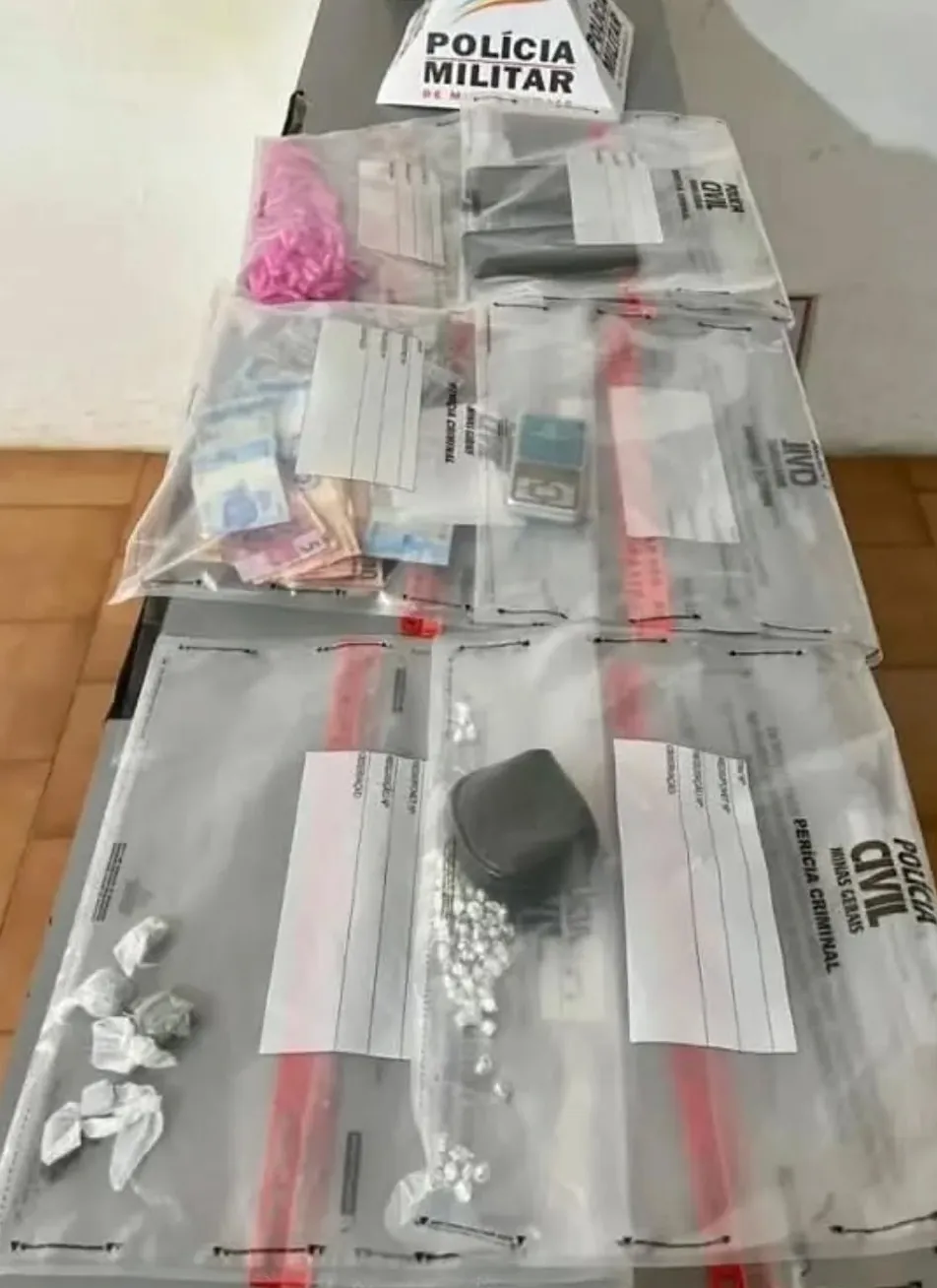 No local, foram encontrados 93 pinos de cocaína, 78 pedras de crack e seis buchas de maconha, além de R$ 2.337 em dinheiro, uma balança de precisão e anotações que indicavam a comercialização dos entorpecentes. Também foram apreendidos um Fiat Palio e uma motocicleta Honda XRE 300, suspeitos de serem utilizados na atividade criminosa.