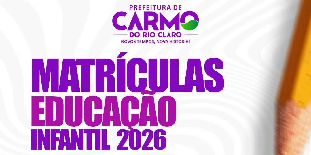 A Secretaria Municipal de Educação de Carmo do Rio Claro iniciou na última segunda-feira (10) o período de matrículas para o ano letivo de 2026, destinado às crianças que irão frequentar a pré-escola. O prazo para as inscrições segue até esta sexta-feira, 14 de novembro.