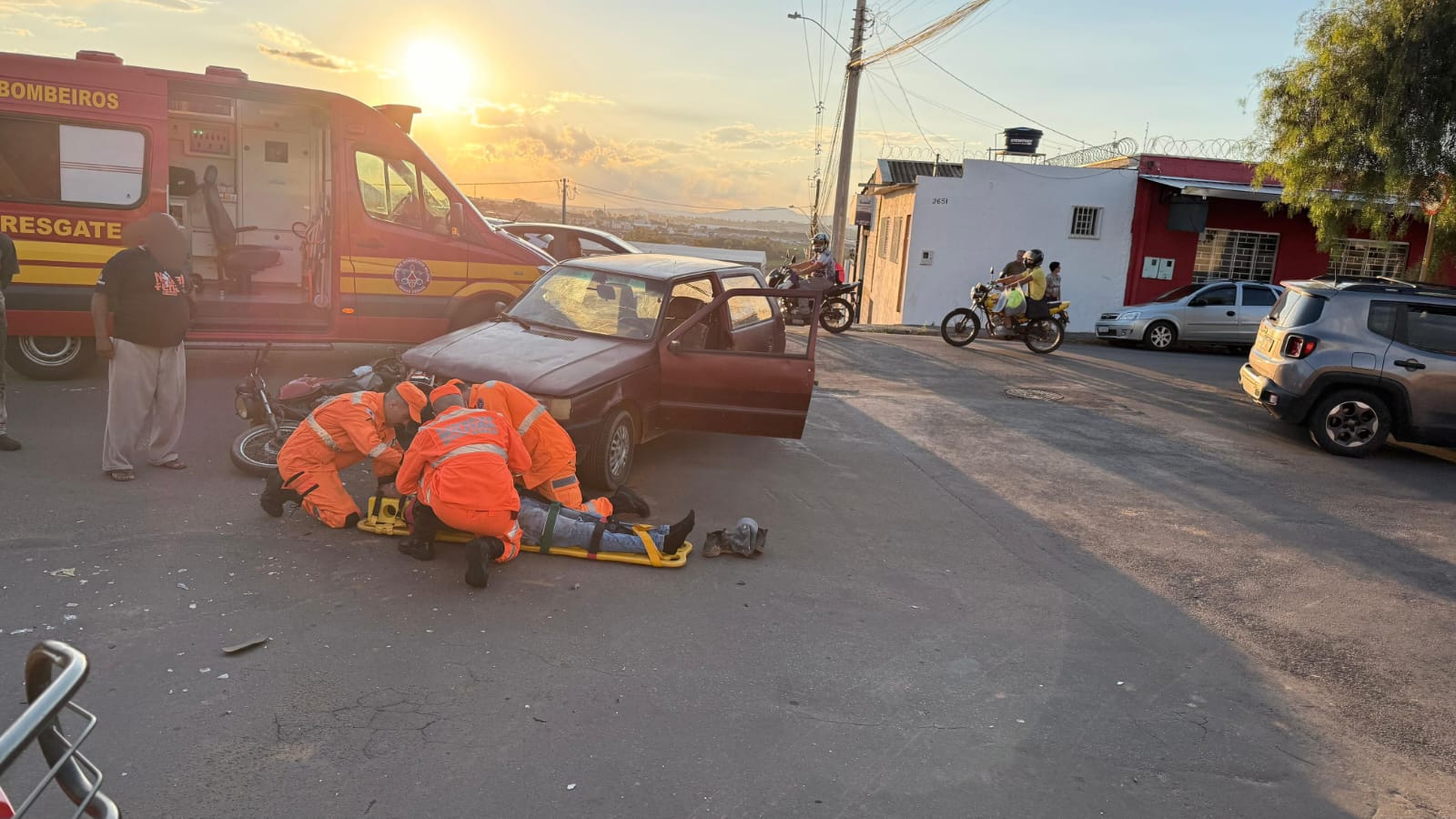 Motociclista fica ferido em colisão no cruzamento da Benjamin Constant com Castro Alves, em Alfenas
