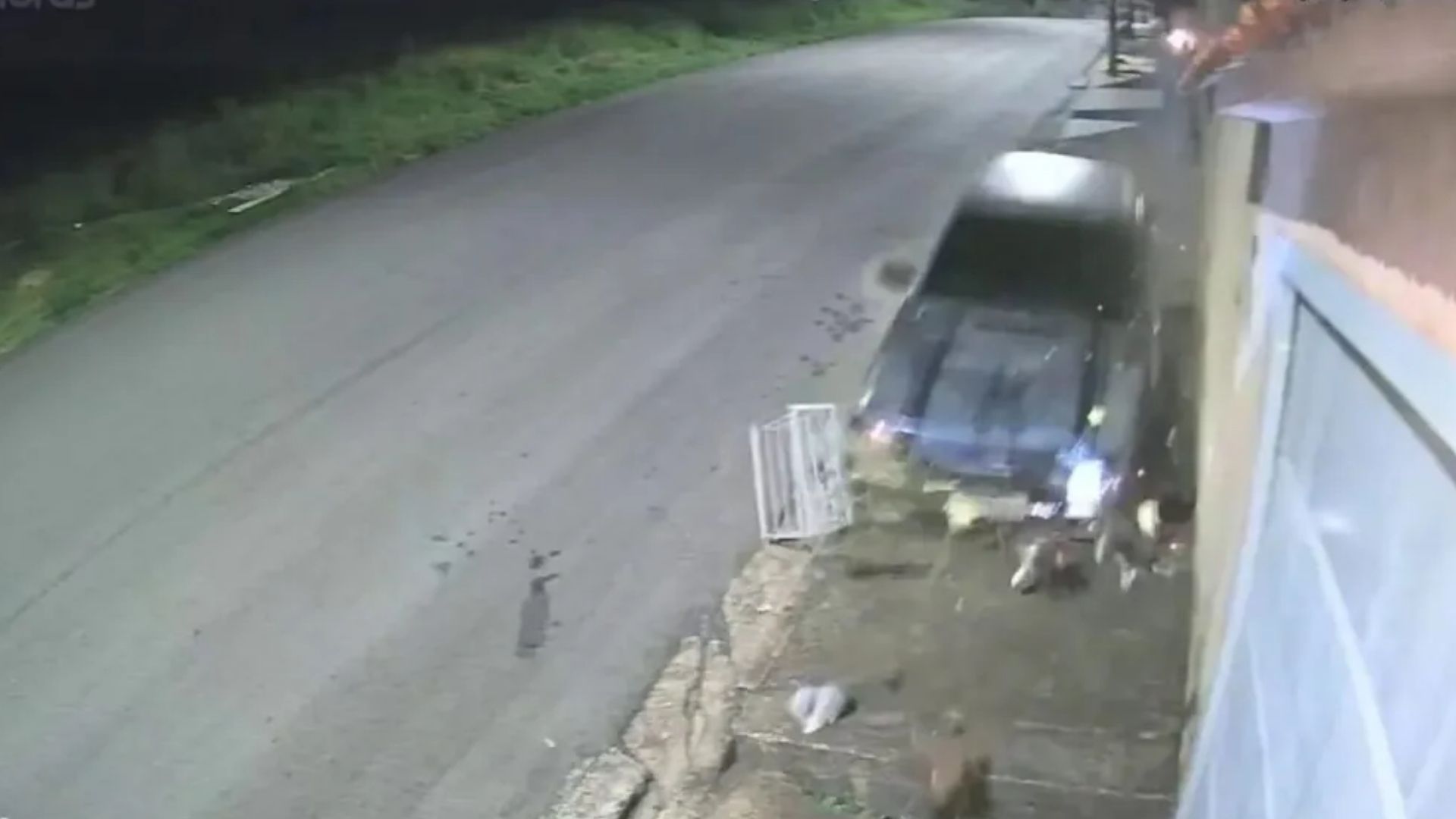 Segundo a Polícia Militar, o veículo perdeu o controle da direção e causou danos ao imóvel e a lixeiras instaladas na via pública. Após a batida, os ocupantes deixaram o local antes da chegada da equipe policial.
