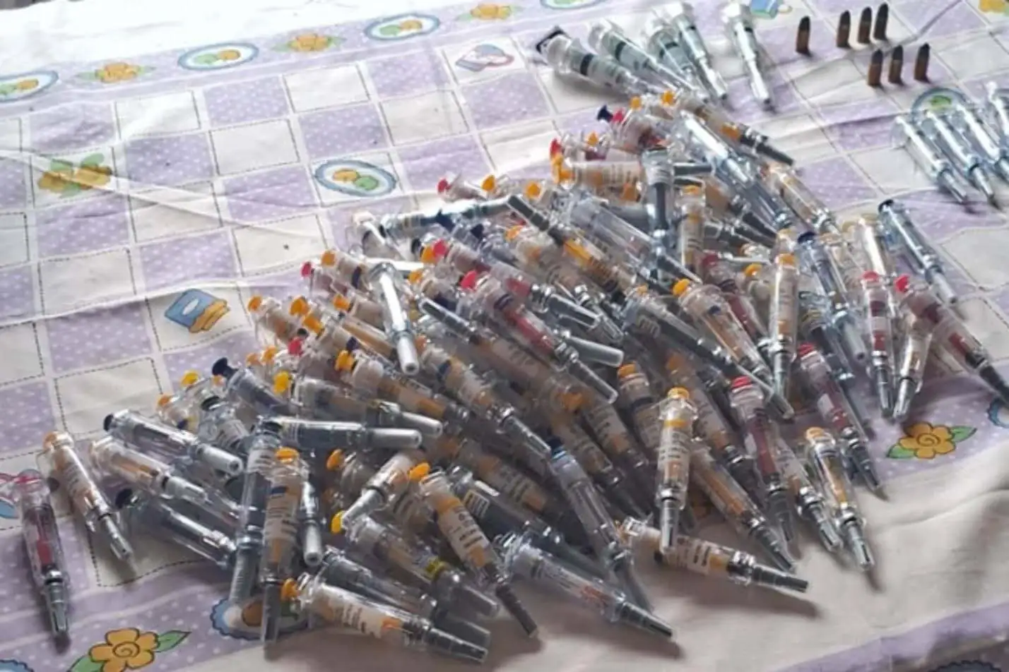 Em uma das casas que foi alvo da operação, os policiais encontraram seringas e munições.