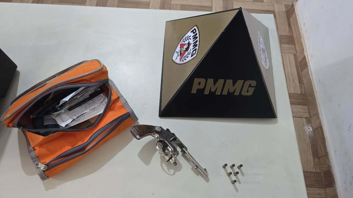 Com isso, os militares foram até a casa do suspeito indicado. No entanto, ao ver a viatura, ele tentou fugir e jogou uma bolsa laranja no chão. Durante a abordagem, ele teria admitido ter pego a arma. Dentro da bolsa estavam o revólver — com numeração raspada — e os documentos do denunciante. Um familiar do suspeito acompanhou toda a ação.
