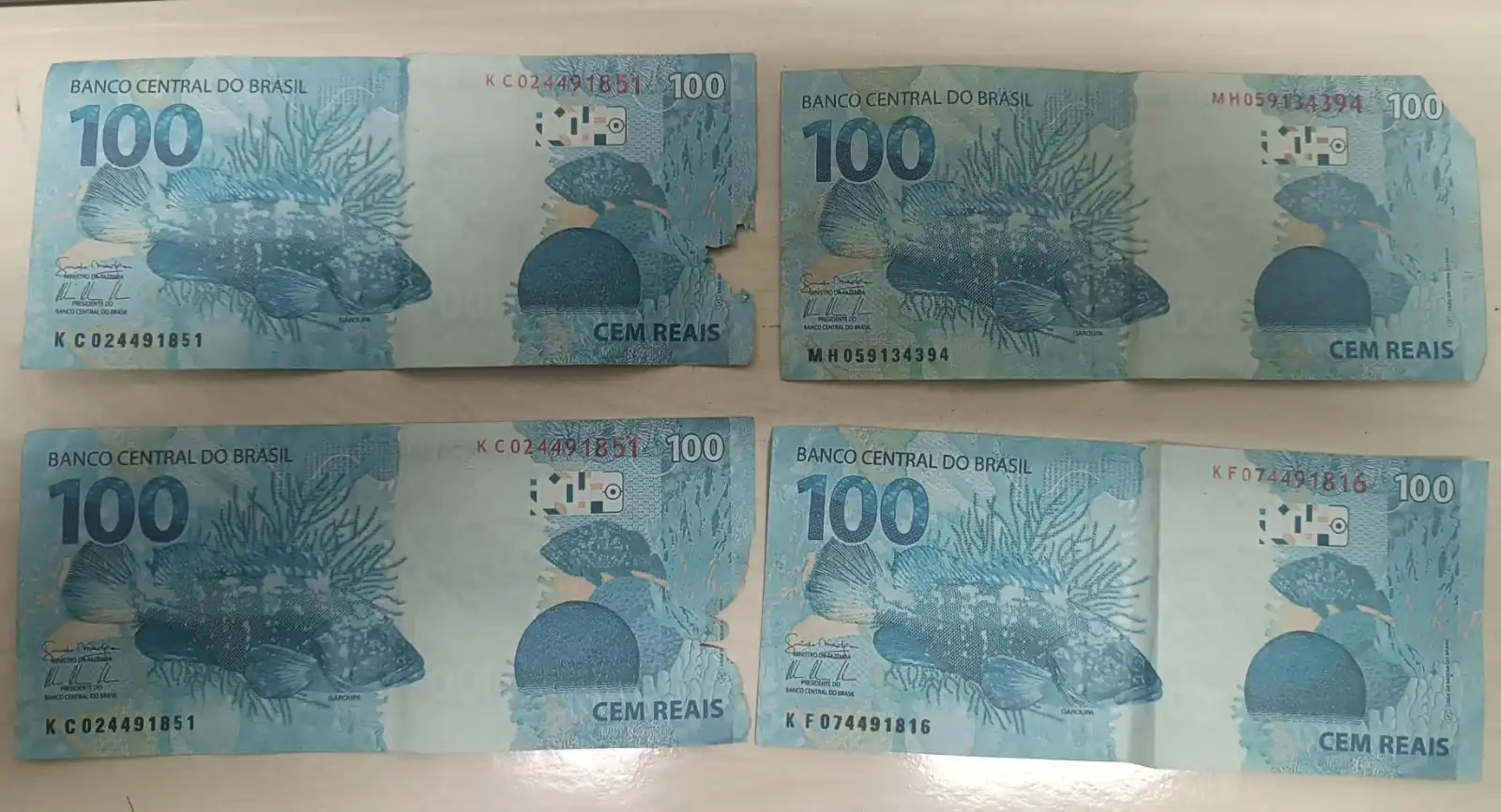Ao analisar o dinheiro, os policiais constataram indícios de falsificação, inclusive duas notas com o mesmo número de série.