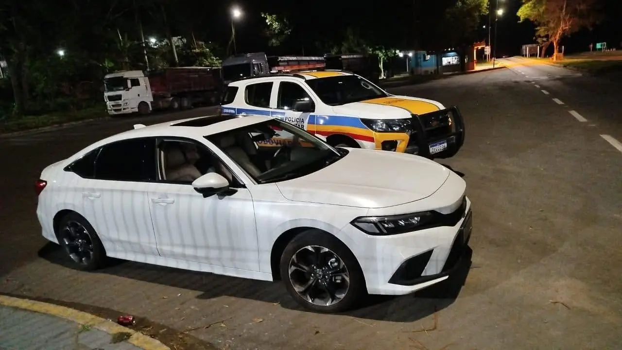 A equipe policial percebeu que um veículo sedan branco, inicialmente parado, voltou a se mover de forma suspeita na pista, o que motivou a abordagem. Após acompanhamento, os militares pararam o automóvel, ocupado por um motorista de 27 anos e um passageiro de 54.