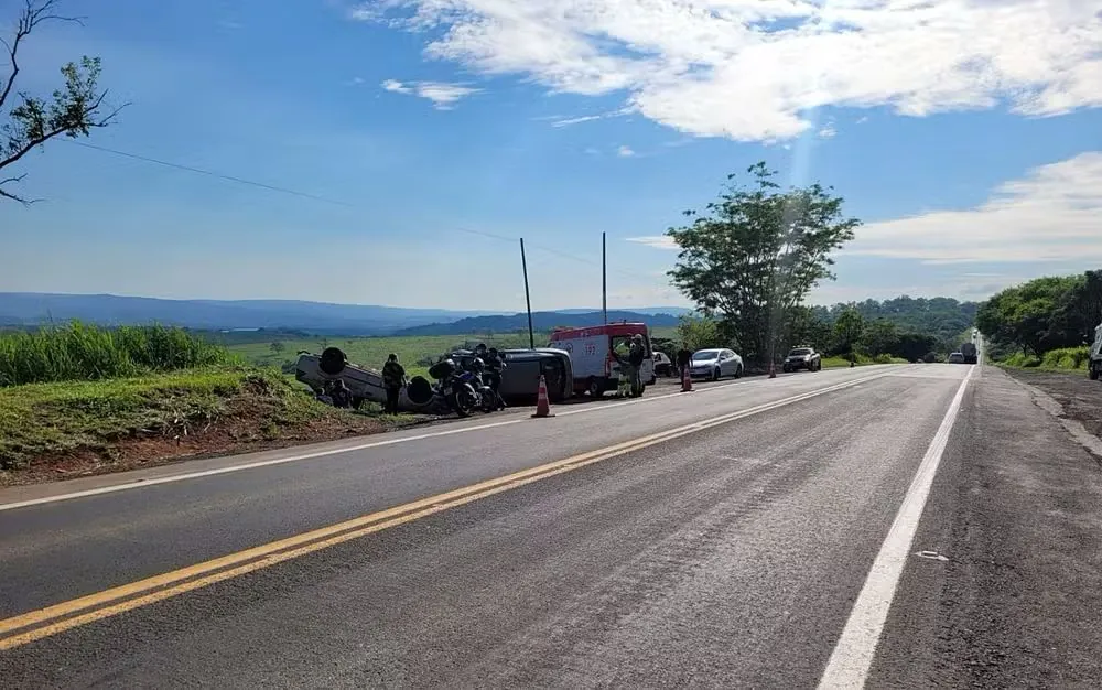 Tags: MG-050; acidente; Alpinópolis; capotamento; HB20; Fiesta; Samu; Polícia Militar Rodoviária; Sul de Minas