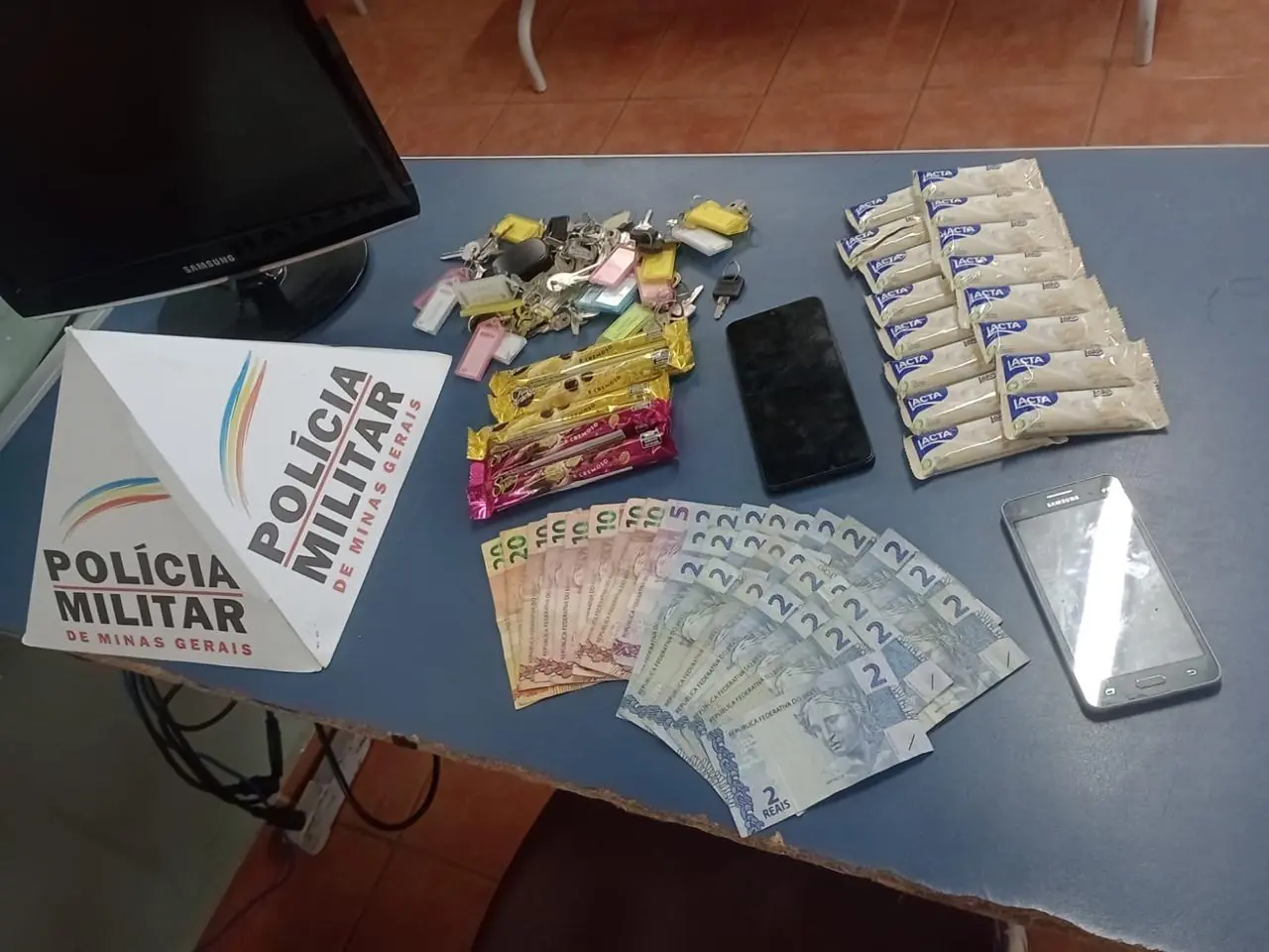 Durante a abordagem, foram encontrados com ele dinheiro, chocolates, celulares e a ferramenta utilizada nos arrombamentos. Questionado, o homem confessou que, logo após o primeiro crime, seguiu até uma pizzaria na Avenida Monsenhor Alderige, no mesmo bairro, onde praticou um segundo furto, também mediante arrombamento, levando dinheiro, alimentos e um aparelho celular.