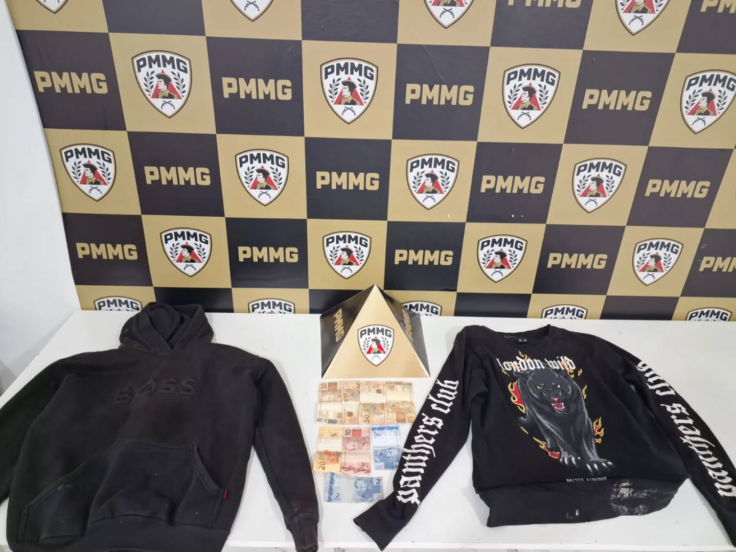 Após serem acionados, os policiais iniciaram buscas imediatas e conseguiram localizar o homem nas imediações. Durante a abordagem, foi encontrada com ele uma quantia em dinheiro. O suspeito informou aos militares que estaria vivendo em situação de rua e que utilizava um imóvel abandonado para dormir. No local indicado, os policiais encontraram peças de roupa que coincidiam com as utilizadas durante a ação criminosa, conforme imagens de segurança.