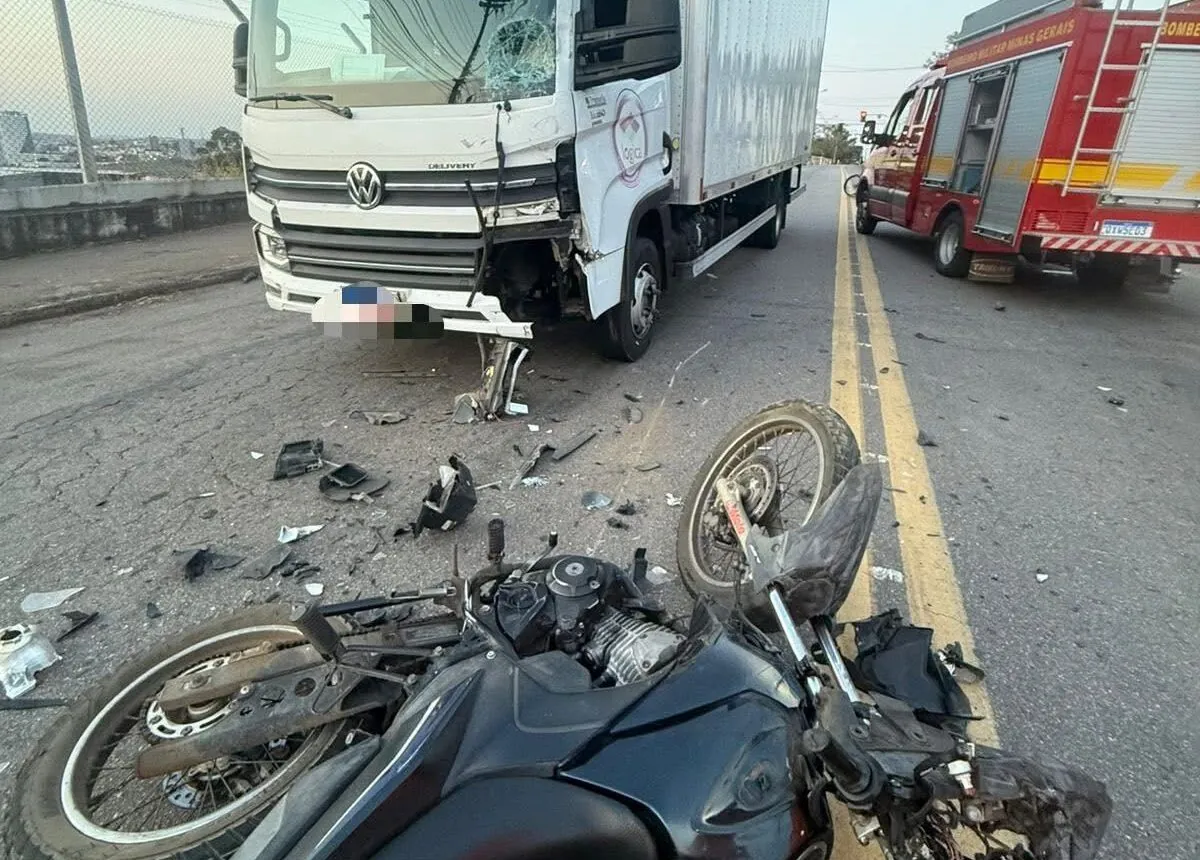 Um grave acidente entre uma motocicleta e um caminhão foi registrado na tarde desta quinta-feira (2), por volta das 17h, na Avenida Manoel Vida, em Varginha.