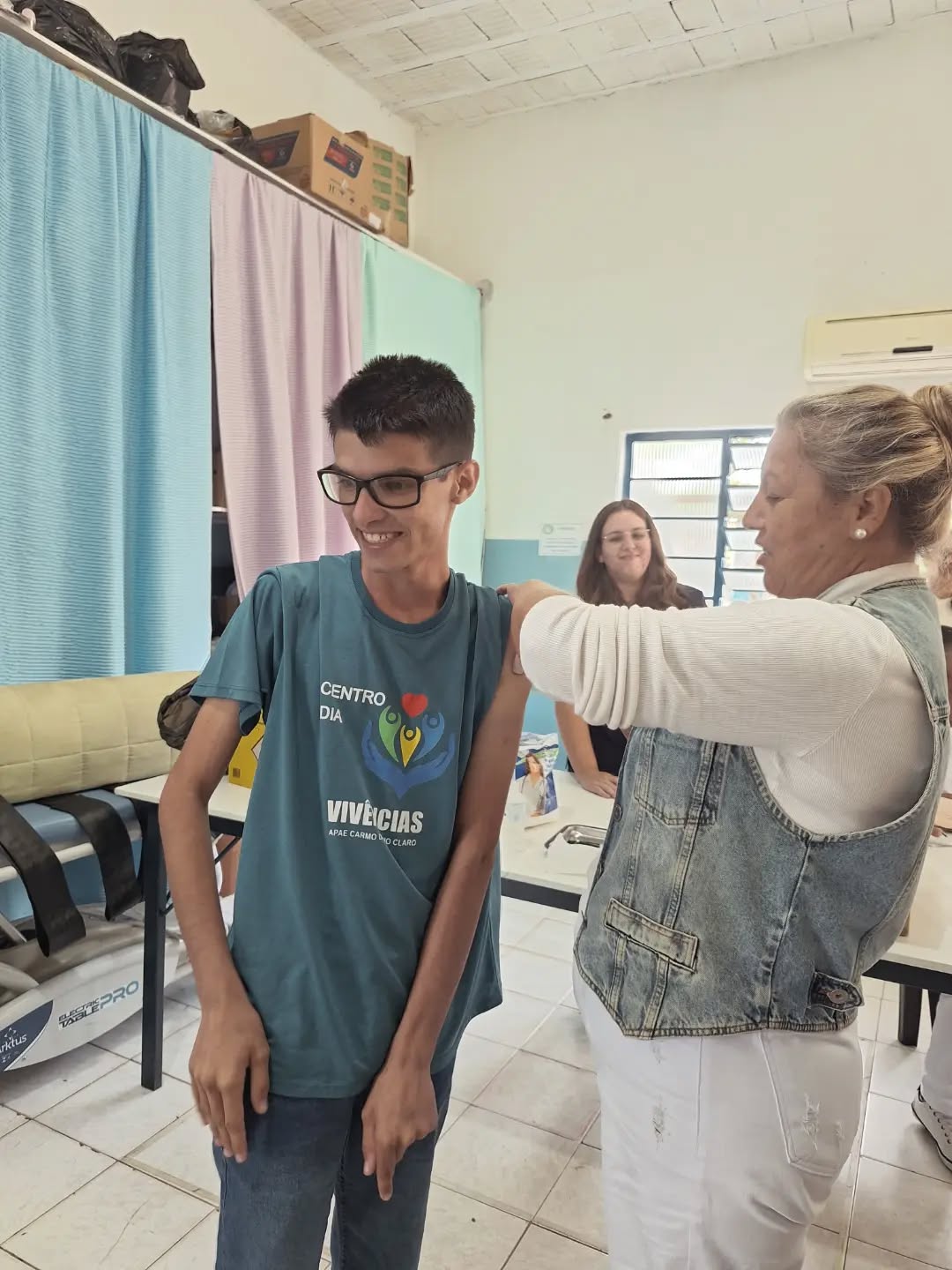 Na manhã desta segunda-feira (13), a equipe da Secretaria Municipal de Saúde de Carmo do Rio Claro realizou uma ação de vacinação contra a gripe na APAE do município. A iniciativa teve como objetivo proteger os usuários da instituição, garantindo mais saúde e prevenção contra doenças respiratórias comuns nesta época do ano.