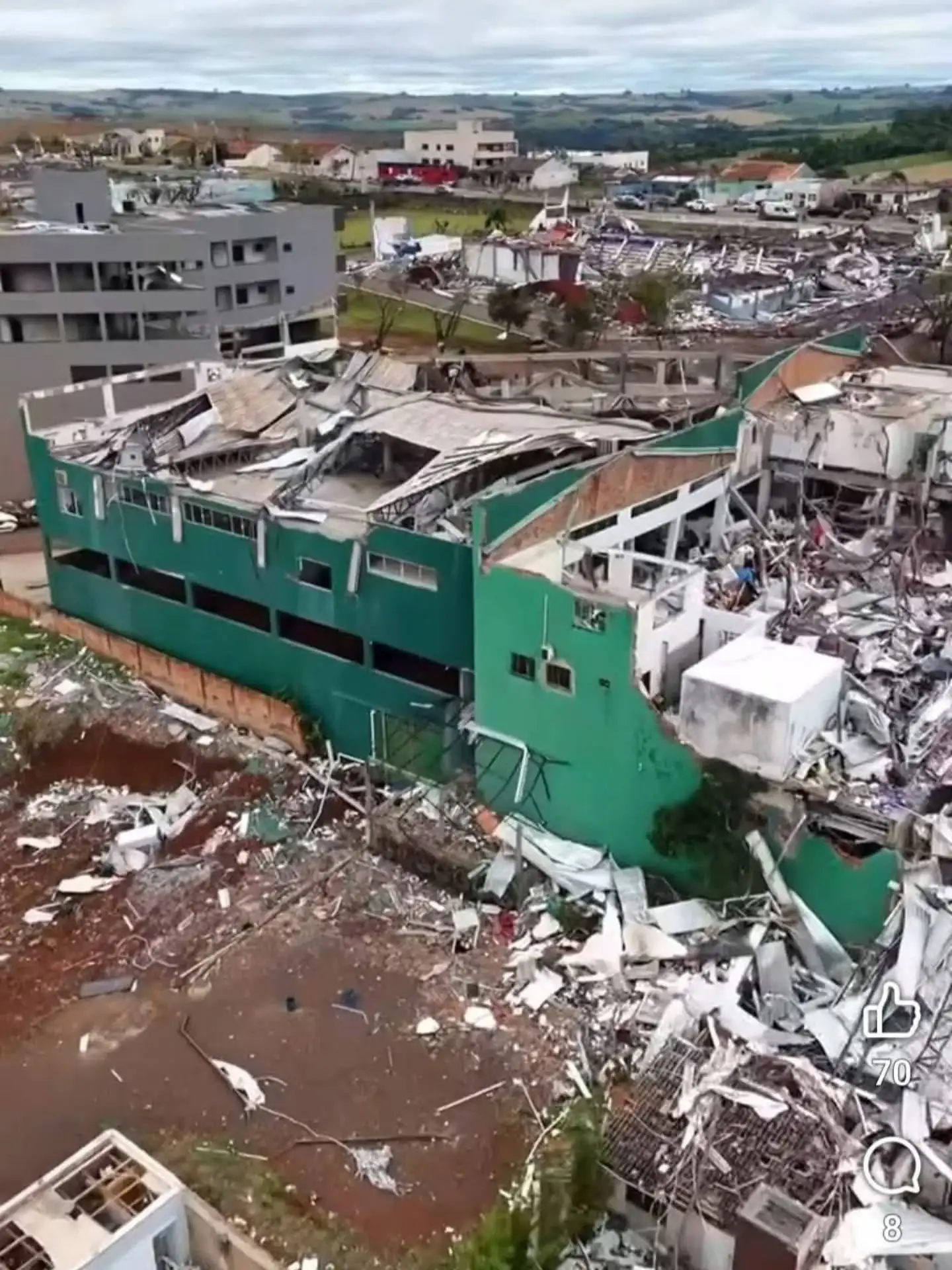 Segundo o Simepar (Sistema Meteorológico do Paraná), os ventos chegaram a mais de 150 km/h, com características típicas de tornado. O órgão ainda analisa dados para confirmar oficialmente a classificação e intensidade do fenômeno.