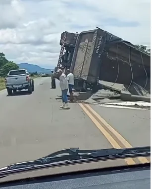 Ainda não há informações oficiais sobre vítimas ou sobre o que pode ter provocado o acidente. De acordo com relatos preliminares, o veículo acabou bloqueando parte da pista, o que exige atenção redobrada dos motoristas que passam pelo local.