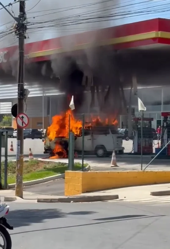 Na manhã deste sábado (25/10), uma Kombi pegou fogo dentro do posto de combustíveis ABC, em Alfenas, no Sul de Minas. Imagens registradas por testemunhas mostram o veículo completamente em chamas, causando grande susto entre funcionários e clientes que estavam no local.