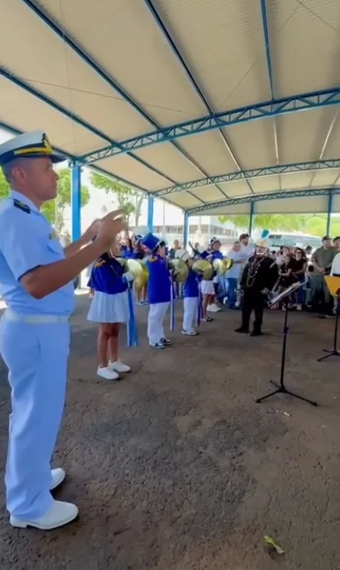 O encontro entre os estudantes e os militares simbolizou a integração entre a comunidade local e a Marinha, unindo a disciplina da música com os valores de civismo e patriotismo promovidos pelas Forças Armadas.
