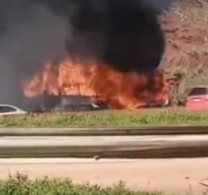 Um ônibus de turismo pegou fogo enquanto trafegava pela BR-381, na altura da Serra de Igarapé, na manhã desta sexta-feira (9/1). Vídeos divulgados nas redes sociais mostram o veículo em movimento enquanto é tomado pelas chamas.