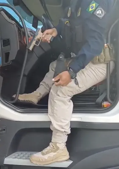 A ocorrência foi registrada durante uma fiscalização de rotina a uma carreta que seguia em direção a São Paulo (SP). Durante a verificação dos elementos de identificação do veículo, os policiais encontraram, no assoalho da cabine, uma pistola 9mm pronta para uso e com um carregador contendo 18 munições.