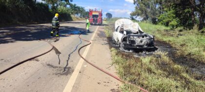 Segundo informações repassadas pelo condutor, ele percebeu fumaça saindo da região do motor e parou o automóvel no acostamento. Pouco depois, o fogo se espalhou rapidamente pelo veículo.